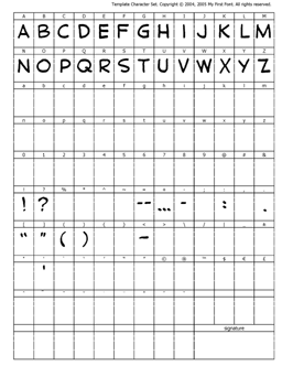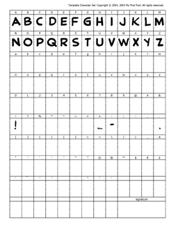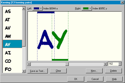 Partially completed template for the 'normal' K-Metal font and for the 'bold' K-Metal font. Every kerning pair was adjusted to ensure proper spacing between the letters.