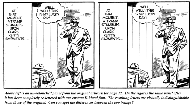 The K-Metal font, now complete, can be used for restoring the letters to the original pages and for lettering all of our new pages in a manner that flawlessly matches the 1940 artwork:
