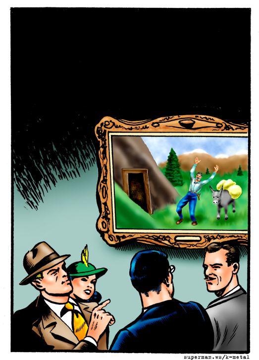 As explained in more detail here, in completing "The Secret of the K-Metal!" we are taking great pains to be as faithful as possible to the Shuster Studio's 1940 artwork. All of the eleven original pages known to be in existence are being completely incorporated into the finished story in a seamless manner. When Angel lays out and draws a new page from scratch, he reproduces the 1940 style as closely as he can. In cases where the original artwork has been recovered, Shane and Bob are each doing their utmost to reproduce the pages in a manner faithful to the Shuster Studio. The details for each particular page differ, depending on the quality of the material we have to work with.